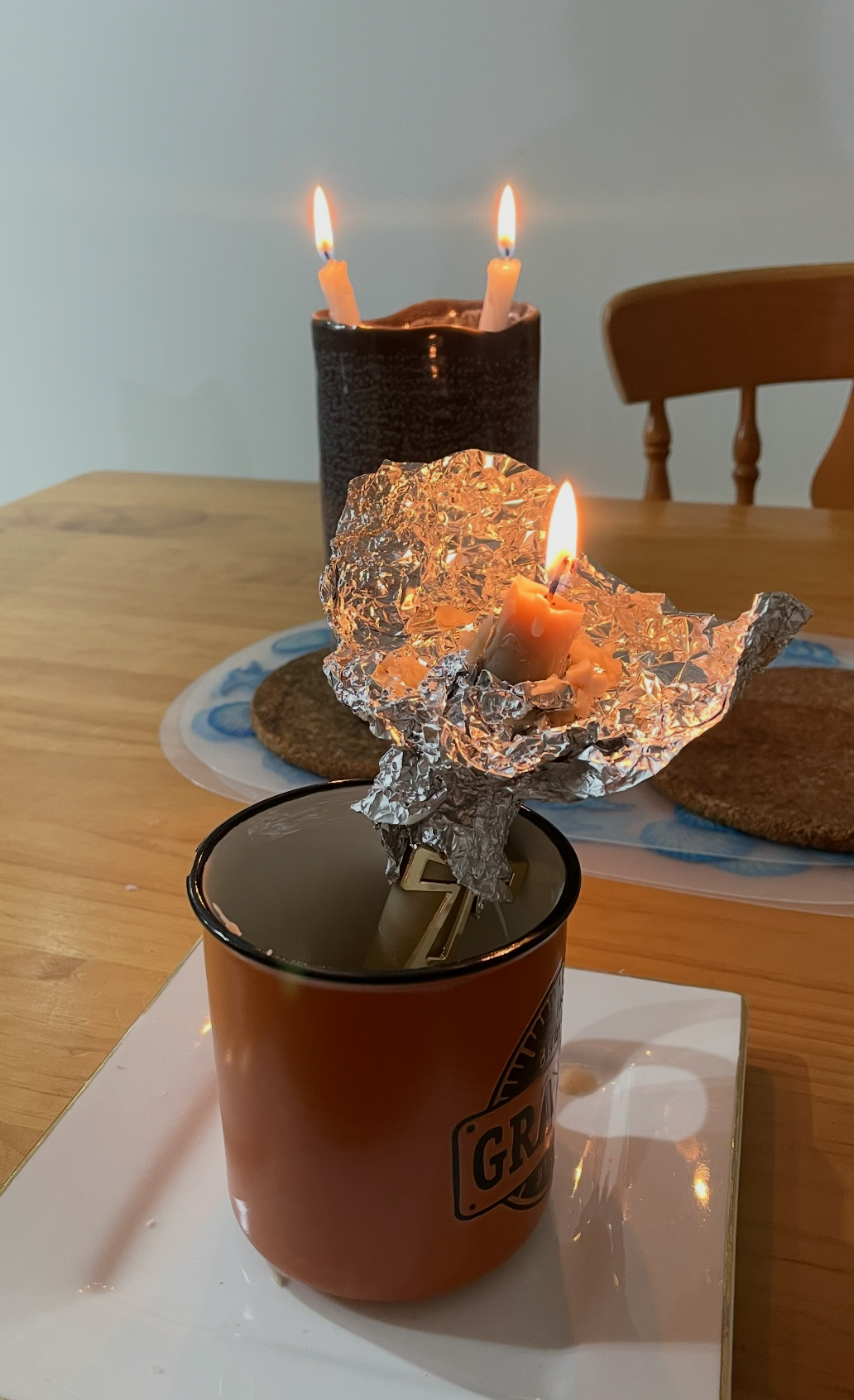 Set out your candles for Saturday night. Most families use the tall white tapered candles (lambades) sold outside churches in the lead-up to Easter.