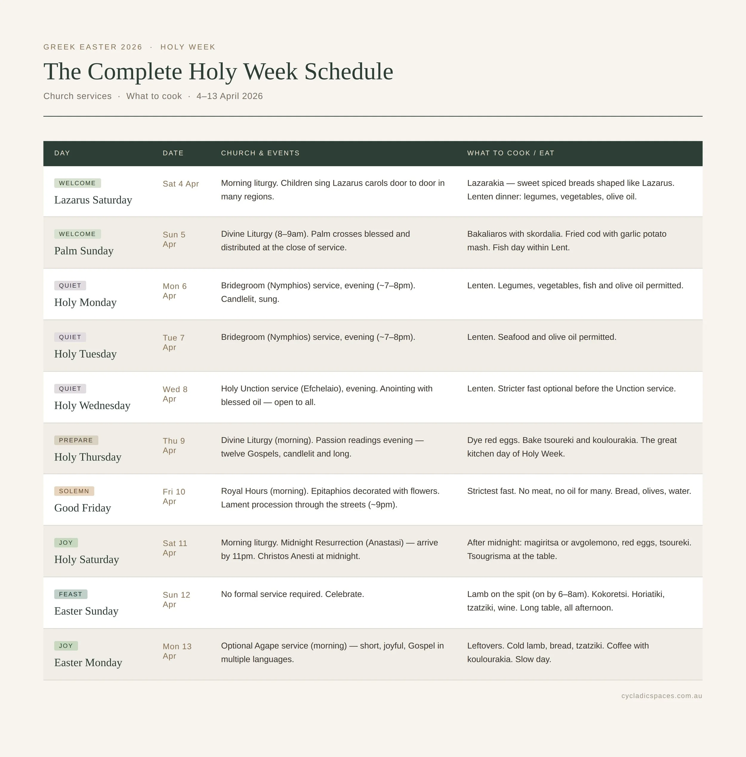 Greek Easter Holy Week. A Day-by-Day Schedule for 2026